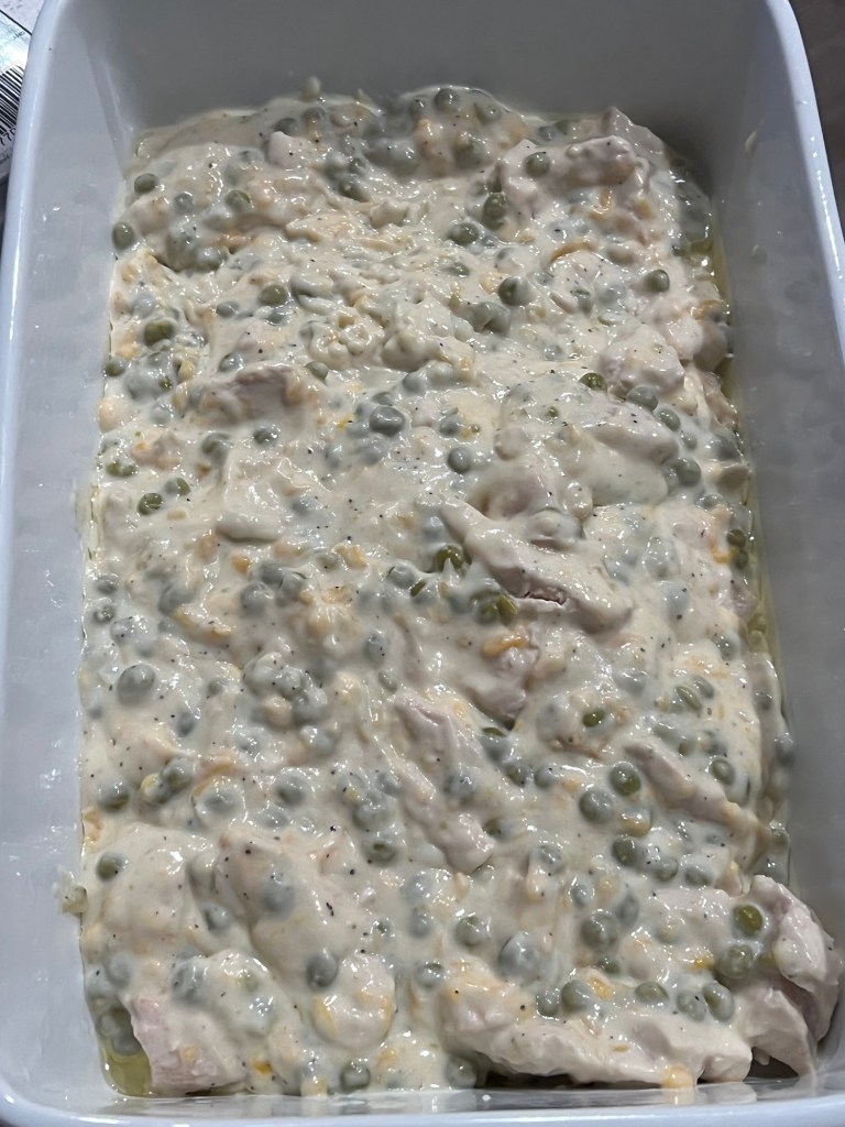 Hi, friends! Back on the blog to share with you this super easy and yummy recipe that I made the other day. My friend introduced me to this recipe awhile back, and I thought it’d be the perfect meal for a cold winter night. I used greek yogurt instead of sour cream, made my own cream of chicken soup with this recipe, added peas, and shredded cheddar cheese. SO hearty and cozy.